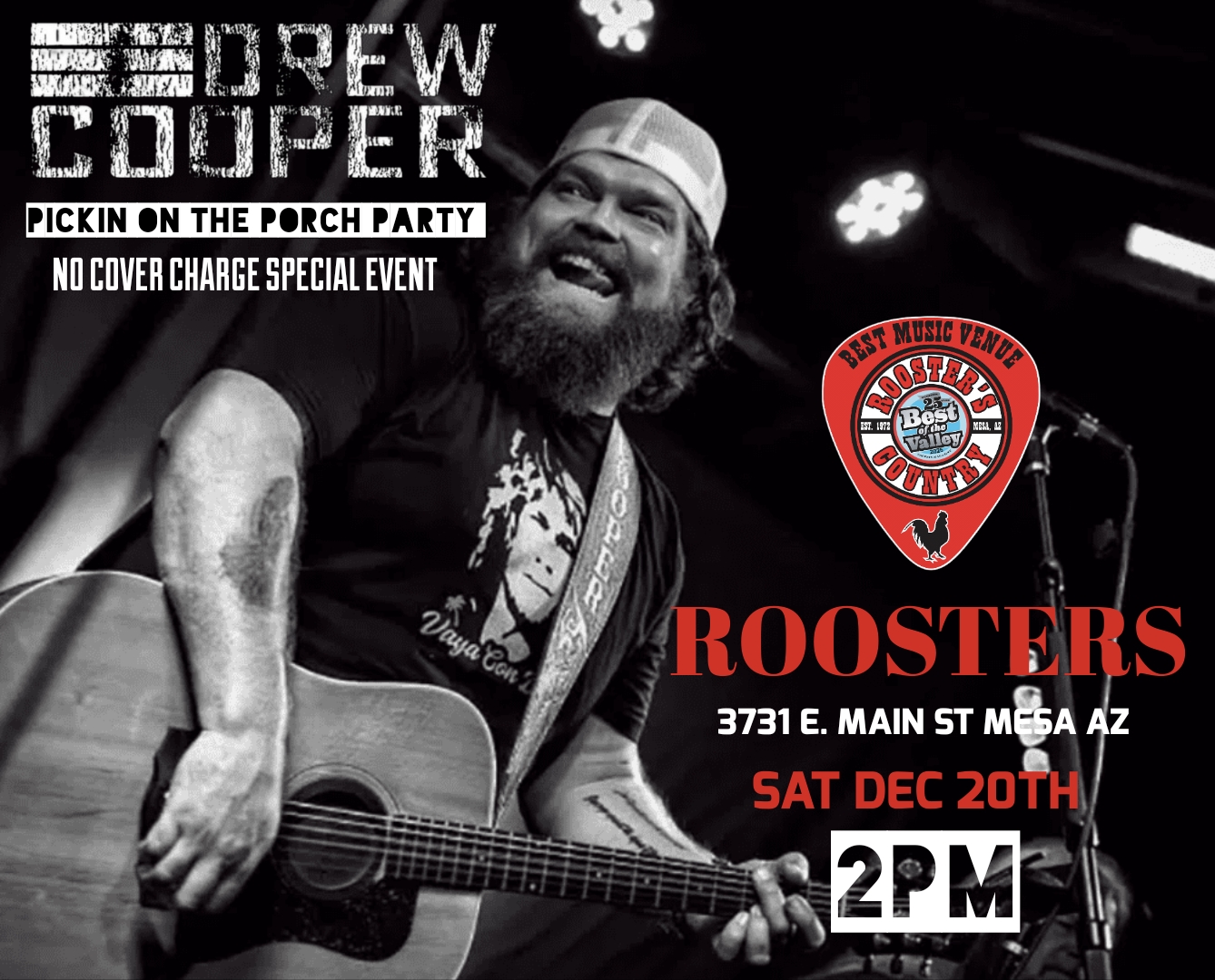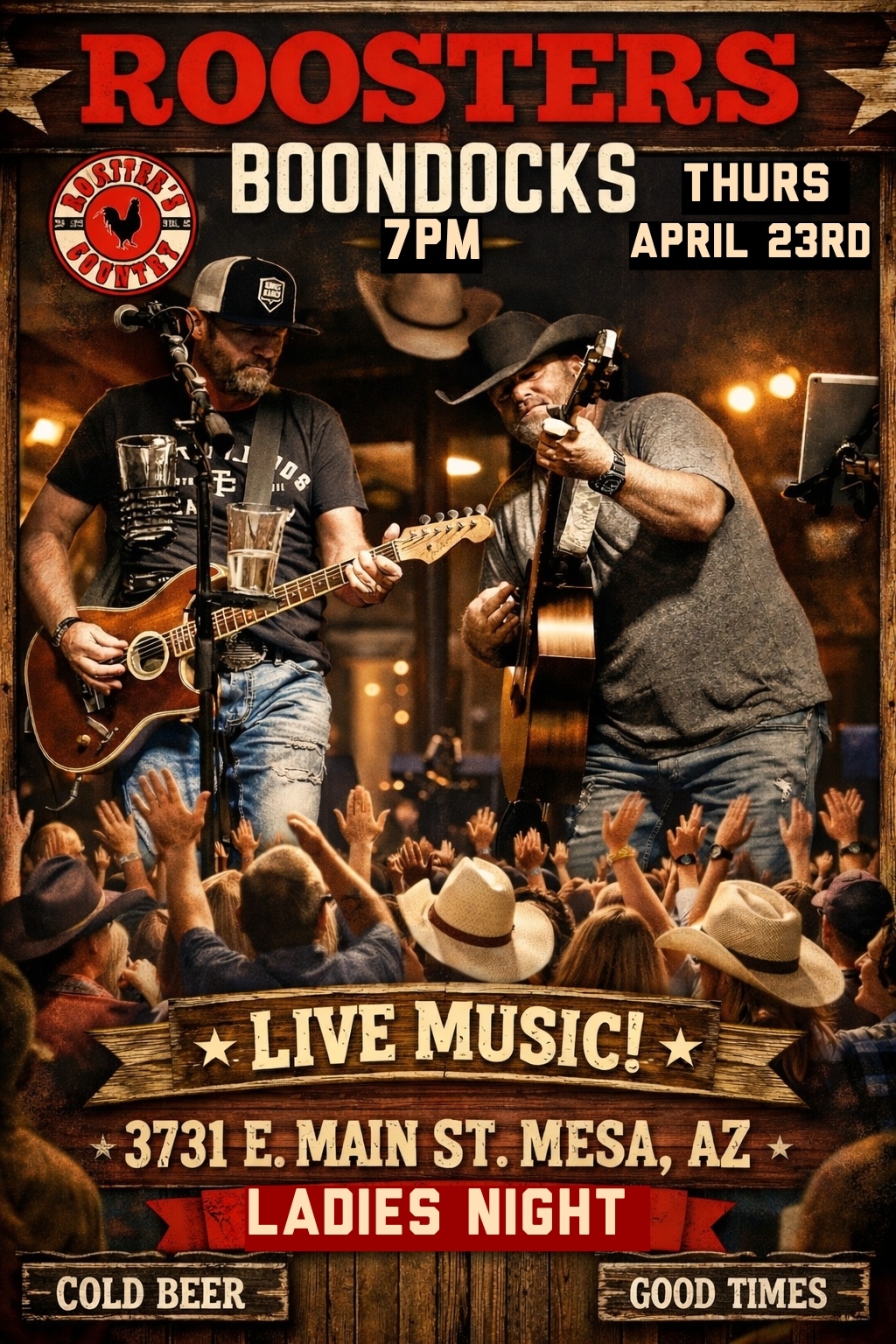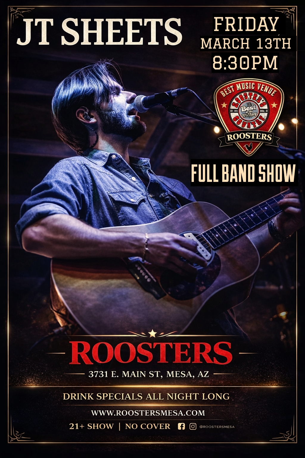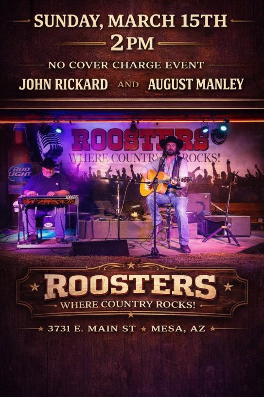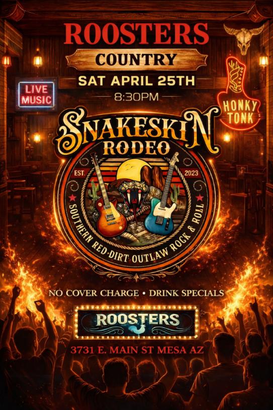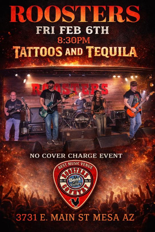 Thank you for visiting our site. Roosters Is located in the heart of Mesa, Arizona and is the number one bar for live music in the greater Phoenix area. Roosters is known for seasoned and up & coming artists/bands. Check out our live music calendar for upcoming shows.